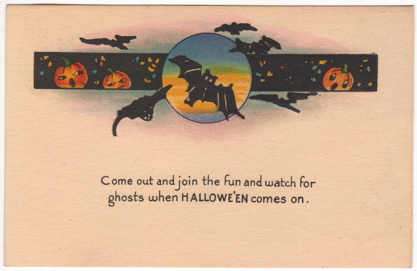 ghosts when HALLOWE'EN comes on.There is also a 300 dpi version of this card. This card is unused, but here's what the back looks like if you're curious.