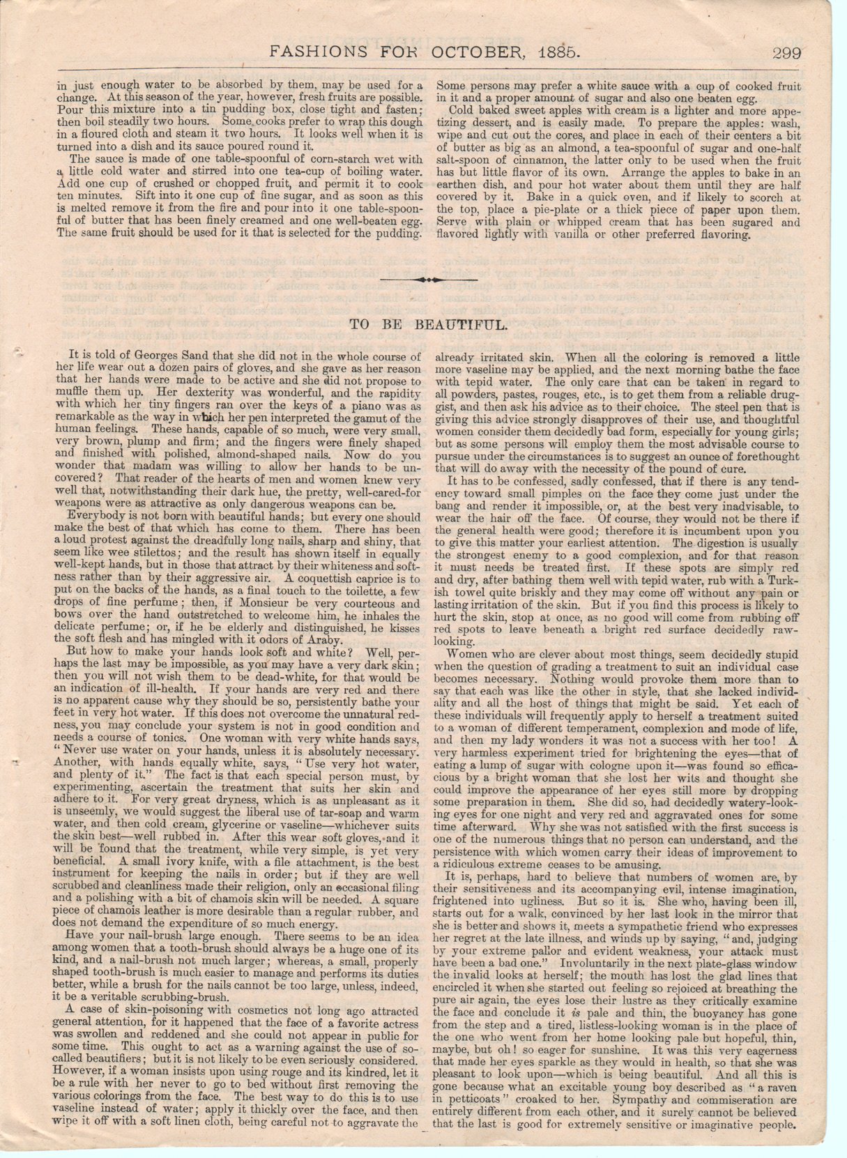 At October of 1885 this magazine falls squarely in the middle of the late bustle period of Victorian fashion. I'm not a huge bustle fan, but the smooth, clean lines and neat asymmetric closures of this period appeal to my desire for elegance balanced with simplicity.