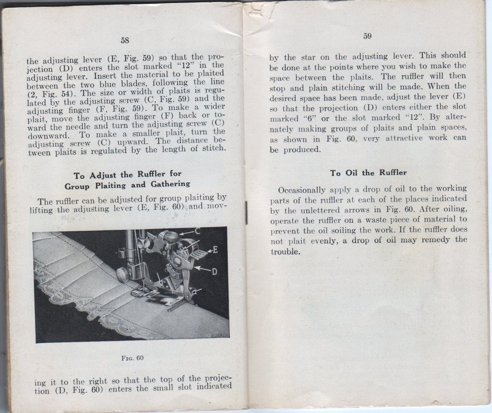 - "To Adjust the Ruffler for Group Plaiting and Gathering"